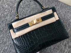 愛馬仕所有包款式大全 Hermès Kelly Pochette Alligator Crocodile Ficelle 煙草色