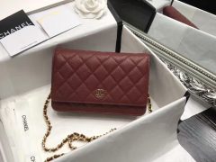 Wallet On Chain魚子醬經典款酒紅色 金色五金