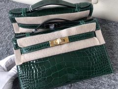 悉尼“愛馬仕”旗艦店 全球奢侈時尚品牌愛馬仕(Hermes)旗艦店 迷妳凱莉壹代價格 Australia Hermes MiniKelly 22cm pochette 亮面方塊 美洲鱷魚 Shiny alligator crocodile CK67祖母綠 Vert Fonce 全手工蠟線縫 金扣