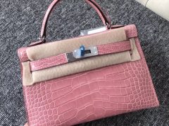 澳洲愛馬仕迷妳凱莉壹代 Australia Hermes MiniKelly 22cm E5桃紅色 Rose Tyrien 亮面方塊 美洲鱷魚 Shiny alligator crocodile 全手工蠟線縫 銀扣