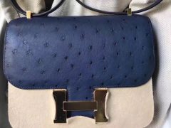澳大利亞愛馬仕悉尼國際機場專賣店 愛馬仕康斯坦空姐包 Hermes Constance 19cm 新顏色M3墨水藍 Blue Encre 亮面方塊 美洲鱷魚 Shiny Alligator Crocodile 品相完美 全手工蠟線縫