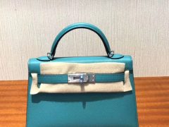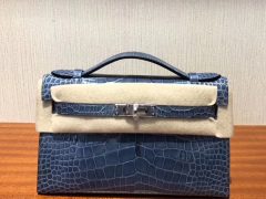 愛馬仕迷妳凱莉包2代 Hermes Minikelly 原廠禦用亮面方塊 美洲鱷魚 Alligator Shiny N7風暴藍 Blue Tempete 手拿包 晚宴包