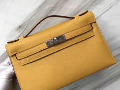 愛馬仕凱莉迷妳壹代臺灣价格 Taiwan Hermes MiniKelly 22cm pochette 1Z Jaune Poussin 小雞黃 禦用原廠Epsom手掌紋牛皮 全手工蠟線縫制