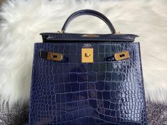香港沙田區愛馬仕娃娃包 Hong Kong Hermes Kelly doll 美洲鱷8L奶油白 拼 T7水妖藍