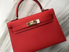 愛馬仕凱莉mini二代尺寸 Hermès MiniKelly2代 S3 Rose de coeur 心紅色