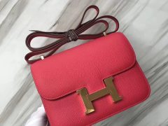 愛馬仕最有名的兩款包 Hermès Constance 1-18 Epsom 鏡子款 Rose casaque 國旗紅金扣