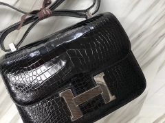 赫耳墨斯·康斯坦斯19厘米 Hermes Constance 19cm 亮面方塊 美洲鱷魚 Shiny alligator crocodile CK57波爾多酒紅 金扣