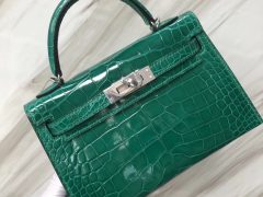 Hermes MiniKelly Pochette CK95法拉利紅 Rouge Braise Shiny alligator crocodile