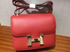 愛馬仕最有名的兩款包 Hermès Constance 1-18 Epsom 鏡子款 Rose casaque 國旗紅金扣