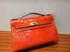 Australia Hermes MiniKelly pochette 22cm 5L极度紫 亮面方塊鱷魚 Shiny alligator crocodile 金扣金属 全手工臘線縫制
