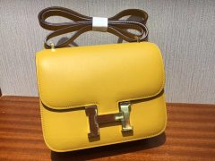 愛馬仕康斯坦斯 空姐包 Hermes Constance 18cm 小康康 Epsom C9鵝蛋黃 銀扣 全手工蠟線縫