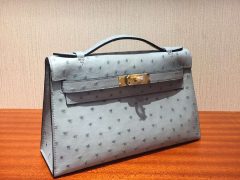 愛馬仕迷妳凱莉包 Hermes MiniKelly 22cmQ5国旗红 pochette手拿包 Ostrich進口鴕鳥皮 全手工臘線縫 金扣