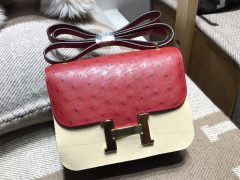 愛馬仕康斯坦斯包 空姐包 Hermes Constance 18(19)鴕鳥皮 Ostrich leather 1Q 奶昔粉Rose Confetti PHW 金銀扣金屬