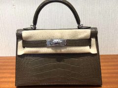 愛馬仕包包 迷妳凱莉包2代 Hermes Minikelly二代 7T電光藍 22cm 原廠禦用霧面方块鱷魚皮 手提包,晚宴包 銀扣 全手工蜜蠟線縫制