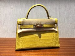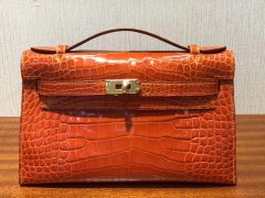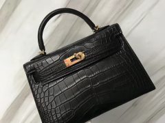 愛馬仕迷妳凱莉2代 Hermes miniKelly 二代 亮面鱷魚皮革 9D琥珀黃金扣