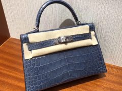 愛馬仕迷妳凱莉包2代 Hermes Minikelly N7風暴藍 Blue Tempete 美洲鱷