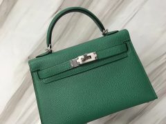 愛馬仕迷妳凱莉包2代 Hermes mini Kelly 二代 20cm 禦用Epsom U4絲絨綠 金銀扣全手工蜜蠟線縫