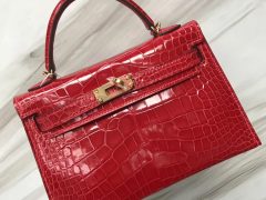Malaysia Hermes MiniKelly CK95法拉利紅 Rouge Braise 亮面兩點 尼羅鱷