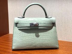 愛馬仕迷妳凱莉包2代 Hermes miniKelly二代 6u新薄荷綠 霧面方塊美洲鱷魚 銀扣