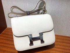 愛馬仕康康空姐包 Hermes Constance Bag CK10奶昔白 Epsom手掌紋 银扣