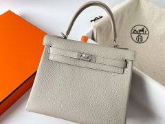 愛馬仕比較火的包有哪些 Hermès Kelly Retourne 25 Togo Craie 奶昔白 銀色