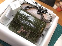愛馬仕康斯坦斯包 Hermes Constance 23 鱷魚光面野生倒V 2Q英國綠 Vert Anglais 銀扣純正英式絕倫 優雅氣質顏色,愛馬仕最難買的包袋。小巧玲瓏易於攜帶,“H”標誌極具個性。