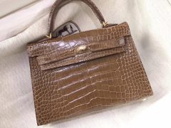 愛馬仕迷妳凱莉2代 Hermes miniKelly 二代 亮面鱷魚皮革 9D琥珀黃金扣