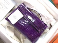 愛馬仕迷妳凱莉包Hermes Mini Kelly二代 J5天方夜谭粉紫 亮面方块美洲鱷魚 金扣