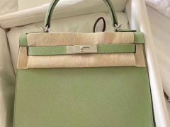 愛馬仕官方網女包圖片 Hermès Kelly doll 美洲鱷魚 C9 Soupre 鵝蛋黃銀扣