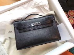 Mini Kelly鸵鸟CK89 Nior黑色街拍首选帅气十足 真是一枚永流传的经典凯莉包 金色金属