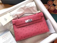 愛馬仕迷妳凱莉包Hermes MiniKelly 20 二代 A5杜鹃红 亮面美洲鳄鱼金扣