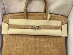 愛馬仕霧面美洲鱷魚 Hermes Birkin 25cm M9 Mimosa 金盞花黃+2H Kraft 牛皮紙色 訂製 全手工蜜蠟線縫製 接受訂製