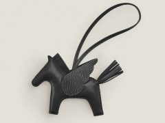 Hermès Rodeo Pegase MM charm Noir Milo lambskin and Swift calfskin