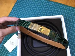 愛馬仕 Kelly 腰帶 鱷魚光面CK67 Vert Fonce祖母綠 金扣
