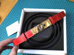 愛馬仕凱利 kelly腰帶 鱷魚皮 Q5 Rouge Cossacks中國紅金扣