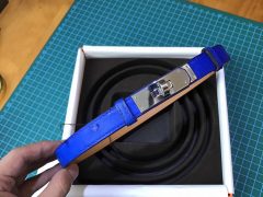 愛馬仕 kelly腰帶南非鴕鳥皮 7T Blue Electric電光藍銀扣