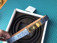 愛馬仕凱利 kelly腰帶鱷魚皮 皮帶 CK75 Blue Jean牛仔藍金扣