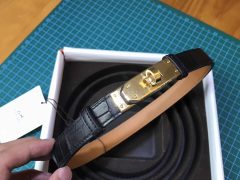 愛馬仕 Kelly 鱷魚皮 CK89 Nior 黑色光面金扣腰帶