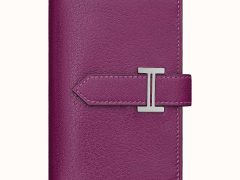 香港北區粉岭 Hermes Portefeuille Béarn mini chèvre P9 Anemone 海葵紫
