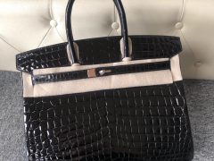 香港油尖旺區柯士甸 Hermes Birkin 35cm Shiny nilo crocodile CD89 Noir 玫瑰金