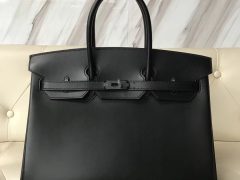 愛馬仕限量版鉑金包官網價格 Hermes Birkin 35cm So black Box CK89黑色 黑扣