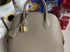 愛馬仕保齡球包25尺寸 Hermes Bolide 25 Chevre 進口山羊皮 18 Etoupe大象灰金扣
