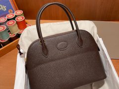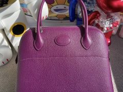 Hermes Bolide 27cm Chevre 山羊皮 P9 Anemone 海葵紫 銀扣 全手工縫製