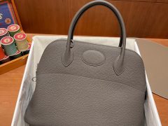 愛馬仕保齡球30尺寸價格 Hermes Bolide 1923 30cm Clemence 8F 錫器灰 Etain 銀扣