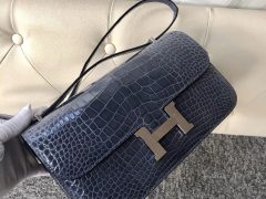 Hermes Constance 26cm Alligator Crocodile N7 Blue Tempete 風暴藍