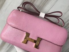 愛馬仕康康仕空姐包 Hermes Constance elan 26cm Lizard 5P Pink櫻花粉