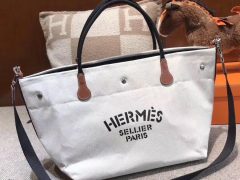 2018愛馬仕帆布包價格 Hermes vintage Cavalier帆布包米白色 沙灘托特媽咪包