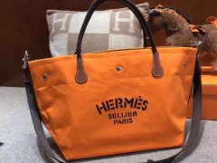 愛馬仕帆布包圖片價格 Hermes vintage Cavalier帆布包橙色 沙灘托特媽咪包