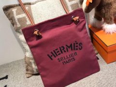 愛馬仕Hermes alina bag 帆布購物袋 酒红色