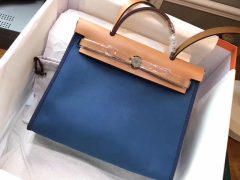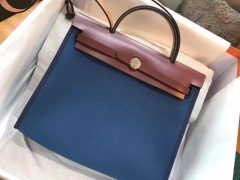愛馬仕Hermes最學院派的包Herbag 31cm 帆布玛瑙蓝色 配牛皮